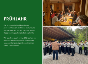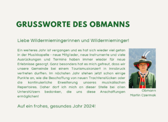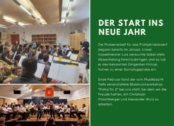 Ein weiteres Jahr voller musikalischer Highlights ist am 31. Dezember mit dem traditionellen Silvesterblasen zu Ende gegangen. Wir freuen uns schon auf viele Termine, die 2024 für uns bereit hält! Auch hoffen wir, wieder viele BesucherInnen mit einem bunt geschmücktem Repertoire bei unseren Konzerten begrüßen zu dürfen.